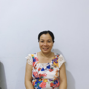 Gia đình: Chồng làm rẫy ở quê, con đang đi học chị làm kiếm tiền cho con ăn học.